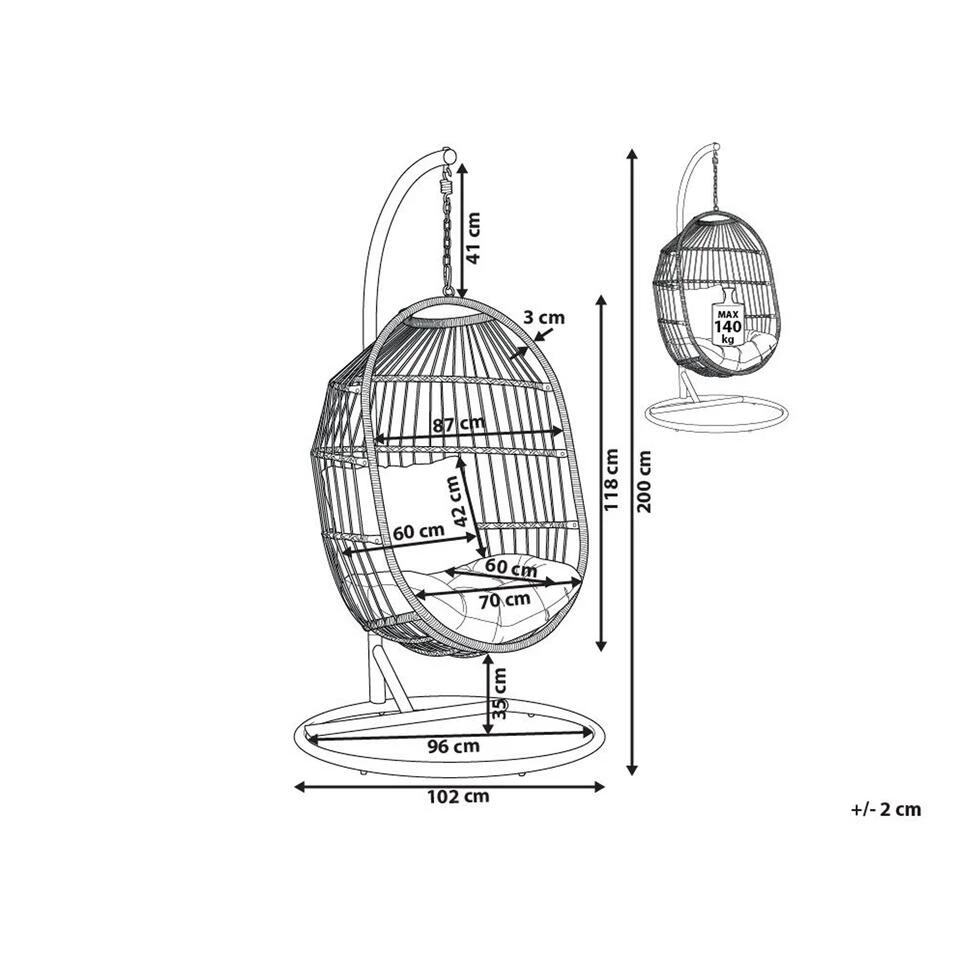 Beliani Hangstoel ALBA – Wit Pe Rotan