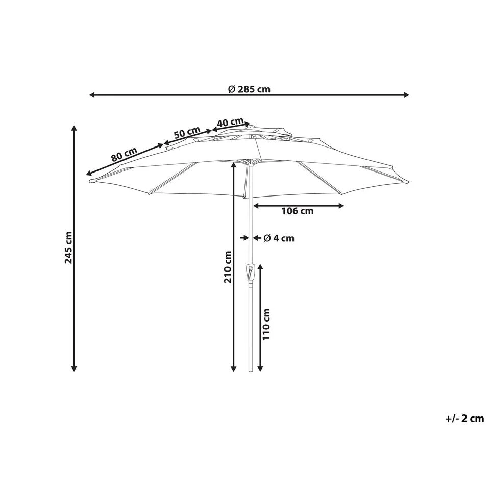 Moderne buitenparaplu. Deze tuinparasol beschermt je huid tegen zonnebrand en zorgt voor de gewenste schaduw tijdens warme zomerdagen. De duurzame gepoedercoate stalen paal heeft een achthoekige luifel van hoogwaardig en UV-bestendig polyester. Dankzij het slingermechanisme kan je de parasol gemakkelijk openen en sluiten, terwijl de ventilatieopeningen zorgen voor een goede luchtcirculatie.