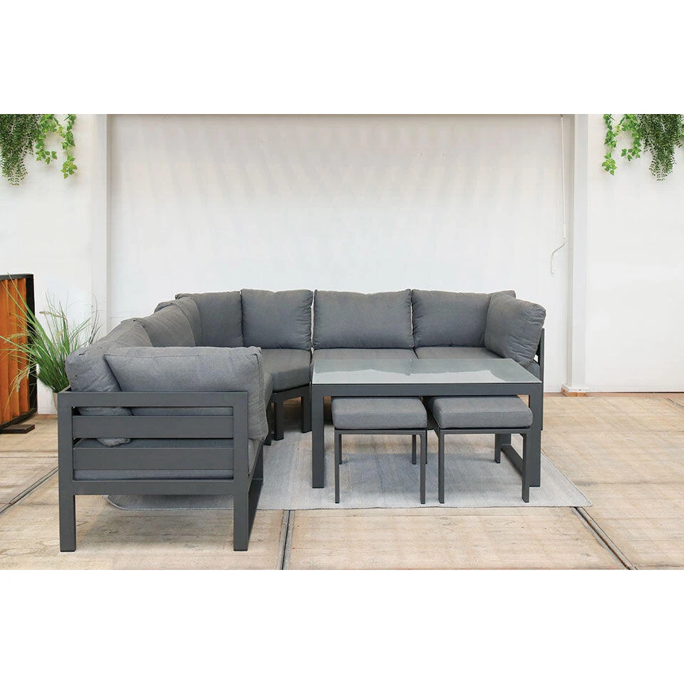 De Barcelona loungeset biedt alles waar u naar op zoek bent. Met de XL variant heeft u nog ruimer zit comfort, hij is modern en heeft een strakke en nette uitstraling met veel comfort. Terwijl u comfortabel aan het loungen bent is er alle ruimte en gemak om uw hapjes en drankje te kunnen plaatsen op de koffietafel. Door de moderne stijl en nette materialen past de Barcelona loungeset in elke tuininrichting.
