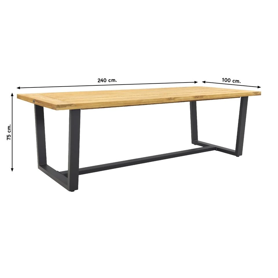 De Murano tuintafel van Exotan wordt gekenmerkt door zijn robuuste uitstraling. Dit komt door het mooie teakhouten tafelblad in combinatie met het donkere frame. Het frame is gemaakt van aluminium, een materiaal dat licht van gewicht is en onderhoudsvrij. Het aluminium is voorzien van een antracieten poedercoating. Deze coating zorgt ervoor dat het frame kras- en stoot vast is en geeft het die mooie kleur. Bovenop het frame rust het teakhouten tafelblad. Teakhout is een natuurlijk product dat nog zal gaan werken. Wanneer het teakhout onbehandeld blijft zal het gaan vergrijzen. Om langer van de warme kleur te genieten kan je een teak protector gebruiken. Met een teak shield zorg je dat de tafel beschermd blijft tegen vuil en water.