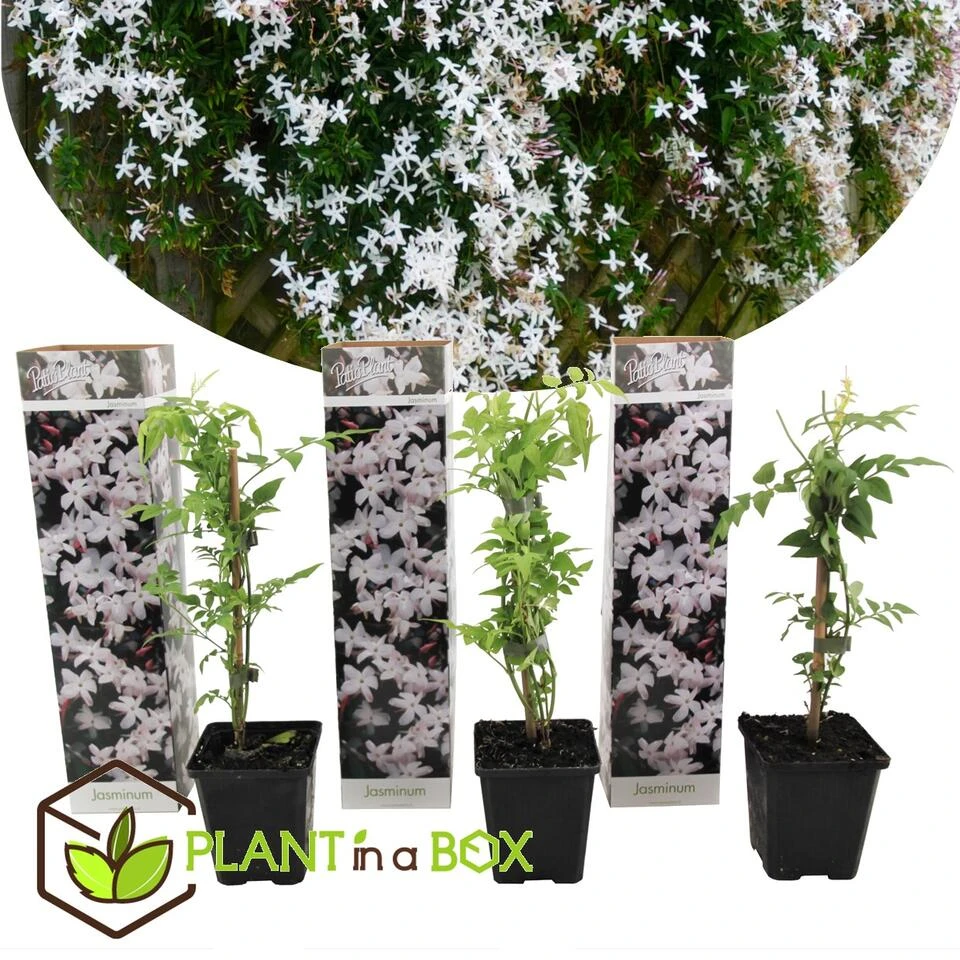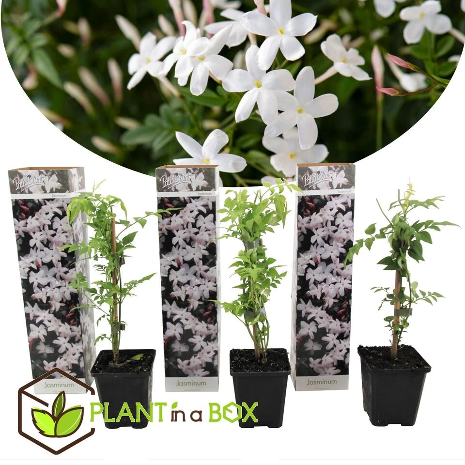 Jasminum officinale, in het Nederlands ‘gewone jasmijn’ of ‘gewone witte jasmijn’ genoemd, is een krachtige bladverliezende klimplant. Deze zomerjasmijn bloeit van mei tot september met kleine, witte, stervormige geurende bloempjes, gevolgd door zwarte besjes. De jasmijn is uitermate geschikt als klimplant en muurbeplanting. Sommige planten hebben wel een steuntje in de rug nodig om omhoog te klimmen. Door gebruik te maken van plantensteunen en delen van de plant met een touwtje vast te maken, zullen ze omhoog klimmen. De bloemen die zich in trossen vormen zorgen in zowel de lente als in de zomer voor een prachtige bloemenzee. De witte jasmijn is daarom ook uitermate geschikt als klimplant om een saaie muur of schutting op te fleuren. In de zomer trekt deze plant vlinders en bijen aan. Het is echt een aanwinst voor in de tuin.