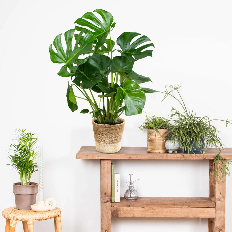 Een regelrechte tropische topper: de Monstera Deliciosa Incl. Jute Mand Nea. Met zijn grote, groene bladeren heeft deze gatenplant ook nog eens luchtzuiverende eigenschappen. Op deze manier produceert hij extra zuurstof en filtert hij schadelijke stoffen uit de lucht. Zijn grote bladeren bevatten gaten en worden met de jaren alsmaar groter wat hem erg bijzonder maakt. Een kamerplant die niet alleen zorgt voor een beter binnenklimaat, maar die ook nog eens de show steelt!