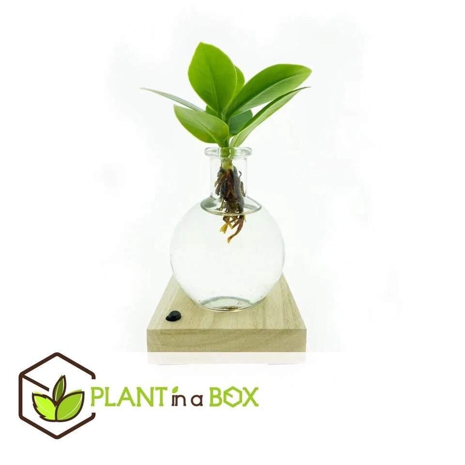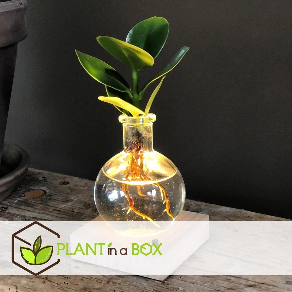 Deze prachtige hydroponie plant wordt kant en klaar geleverd inclusief glazen vaasje, decoratieve standaard met LED-lampje en een batterij. Het enige dat je hoeft te doen, is water toevoegen. En een mooi plekje uitzoeken natuurlijk!