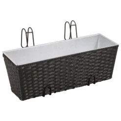 1x Kunststof Ratolla vierkante rotan balkon plantenpotten/bloempotten antraciet 8,5 liter. Serie: ratolla railing square. Kras en stootvaste bloempot/plantenbak met rotanvlechtwerk uitstraling, zonder gaten. Afgeronde doos voor montage op leuningen en balustrades. Formaat: lengte ca 27,2 cm. Breedte ca 27,2 cm. Hoogte ca 22,5 cm. Inhoud: 8,5 liter. Materiaal: kunststof. Geschikt voor binnen en buiten gebruik. Tuin en balkon decoratie plantenpot/bloempot.