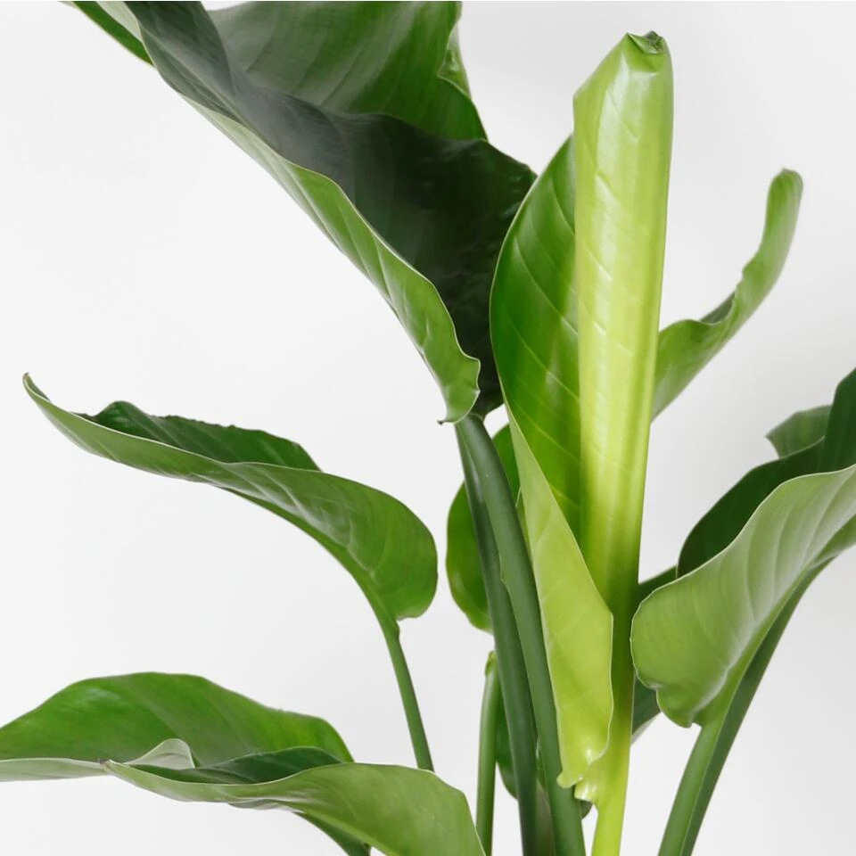 Strelitzia Nicolai Incl. Zeegras mand Lux, beter bekend als Paradijsvogelplant heeft grote, groene bladeren en is daarnaast ook nog eens luchtzuiverend! Zo produceert hij extra zuurstof en breekt hij schadelijke stoffen af. Deze Nicolai heeft zijn naam te danken aan zijn welbekende paradijsvogelbloemen. Helaas voor ons groeien deze zwart/witte bloemen alleen in de jungle. Maar niet getreurd deze fantastische plant heeft peddelvormige bladen en sterke, lange bladeren. In huis kan deze plant wel een hoogte bereiken van maar liefst 2 meter. Zo creëer je pas echt een jungle sfeer in huis!
