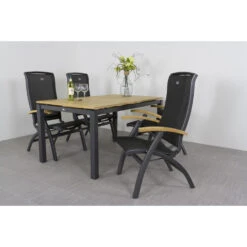 De Ambassador tuintafel van Taste heeft een teakhouten blad. Teak hout is een harde houtsoort en daarmee perfect geschikt voor het gebruik in tuintafels. Teak hout zal na verloop van tijd gaan verkleuren en haarscheurtjes gaan vertonen. Dit is niet erg want het maakt de tafel juist nog stoerder. Mocht je de voorkeur hebben om de originele kleur te behouden van het teak hout. Dan adviseren wij om de tafel te behandelen met een protector. Deze kun je eenvoudig mee bestellen in de voordeelbundel. Om vlekken te voorkomen kun je de teak tafel ook behandelen met een teak shield. Dit onderhoudsmiddel zorgt er tevens voor dat het teak water- en vuilafstotend is. Let op dat je de teak tuintafel nooit afdekt met een hoes. Wanneer het tafelblad volledig afgesloten wordt kan het niet “ademen” en kunnen er lelijke vlekken ontstaan.